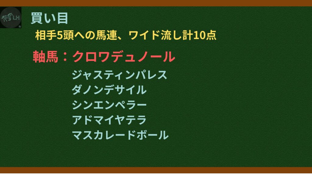 軸馬:クロワデュノールから相手候補5頭への馬連・ワイド流し