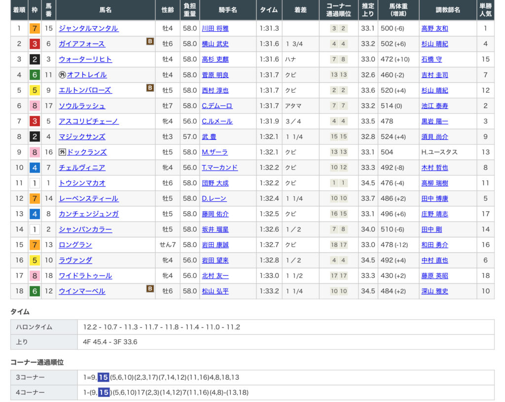 • 結果:ジャンタルマンタル(7枠15番)がデータ通りに好走。
